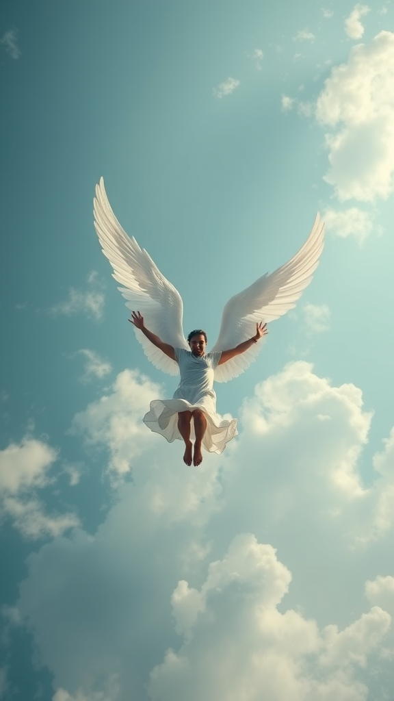 نزول شخص من سماء ولديه أجنحة بيضاء