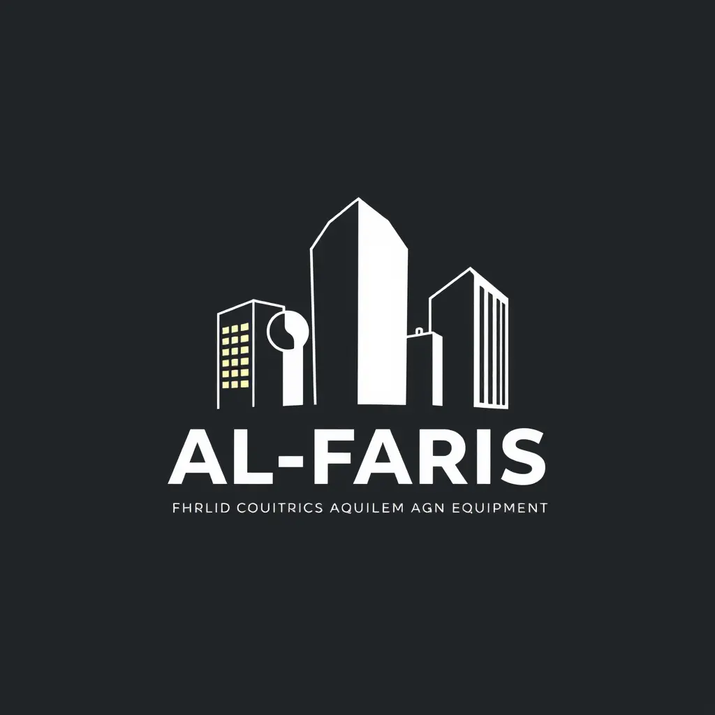 شعار مكتب الفارس للتعهدات العامة و التجهيز على شكل مباني