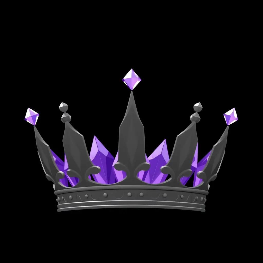 تاج اسود وخلفية سوداء فقط بدون اي اشخاص والبلورات بداخل التاج تكون بنفسجية اللون انميشين