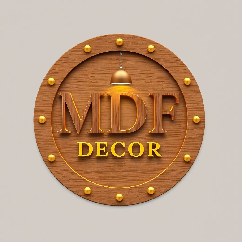شعار لورشه اسمها mdf ديكور و هي ورشه لي ديكور المطابخ و محلات الذهب و الشعار يكون لمطبخ و به شعار الورشه مثل اللوحات  3d و يكون بلون خشبي و اضاءة جميله