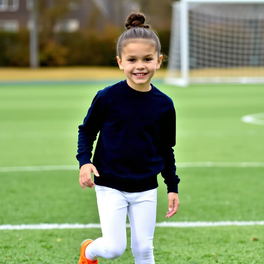 لاعب كره قدم شب  في ملعب  يرتدي كنزه لون كحلي و بنطال شرط لون ابيض و كلسات طوال ابيض  و بوط رياضي لون برتقالي
