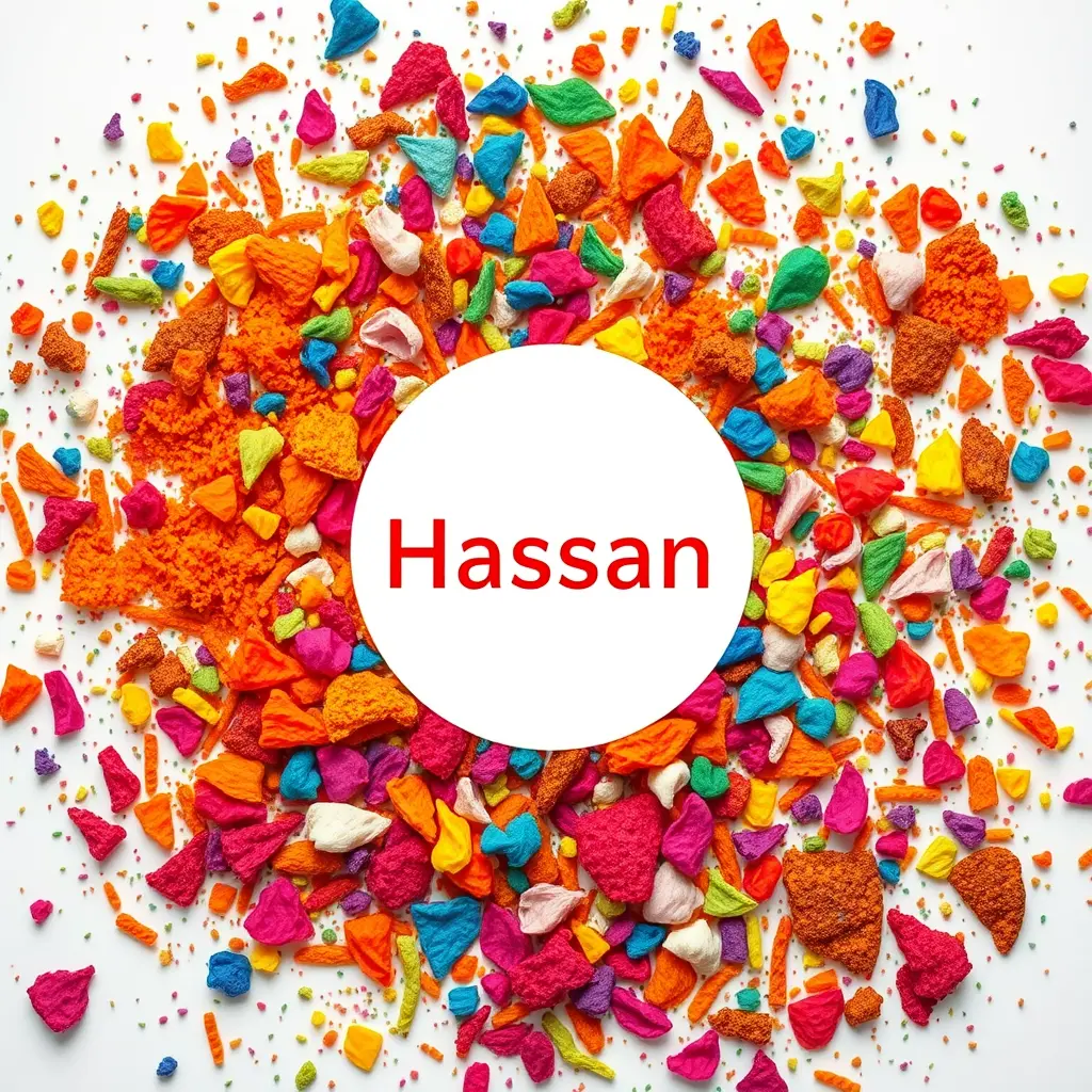 تناثر ألوان حية وزاهية، تتوسطها دائرة بيضاء نظيفة بسم حسان