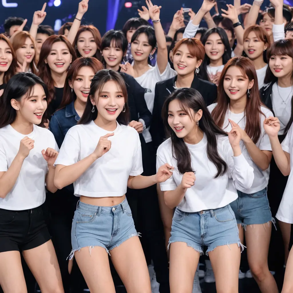 فرقة كيبوب فتيات من تسع عضوات يرقصون وحولهم المعجبون