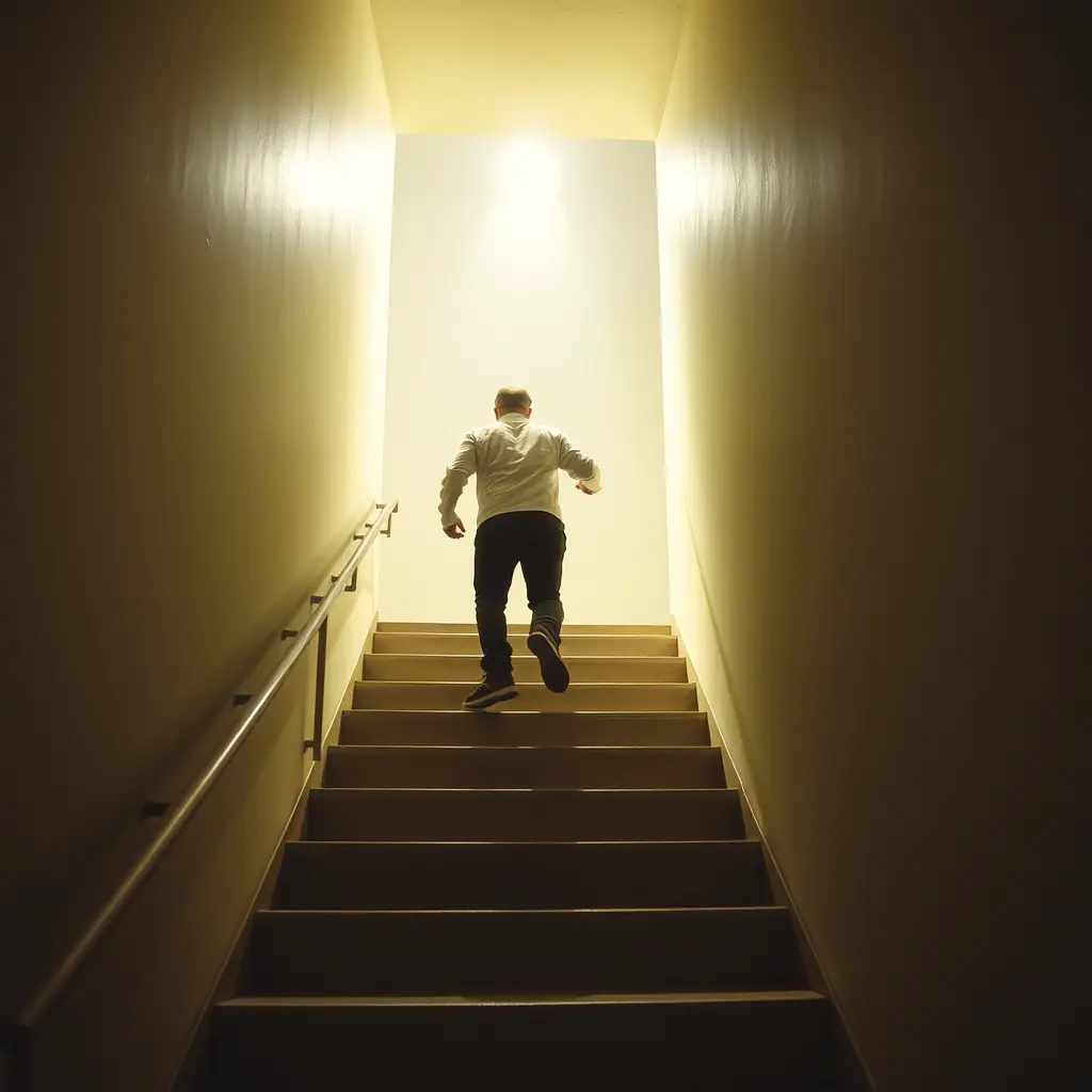 شخص يصعد السلم ليصل الي النور
