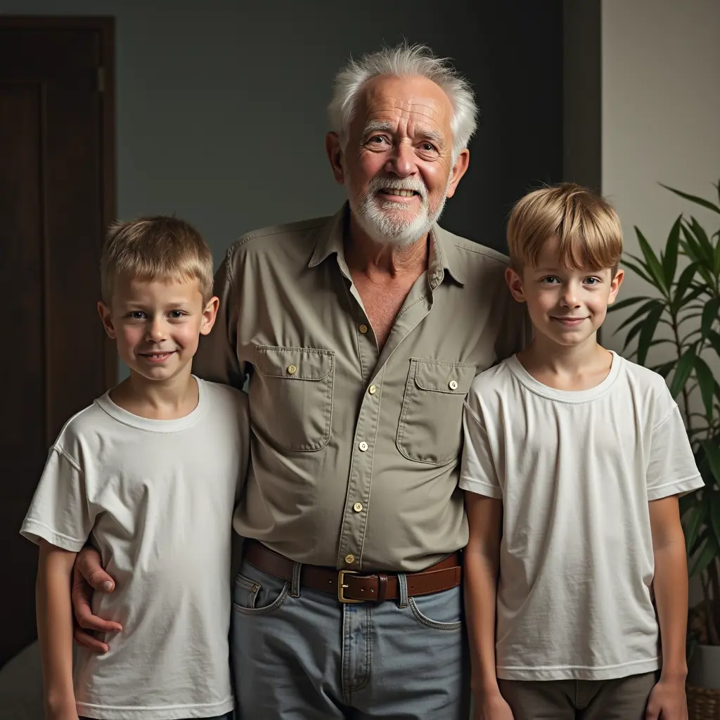 صورة اب عجوز مع ابنائه البالغين من العمر 40 سنة