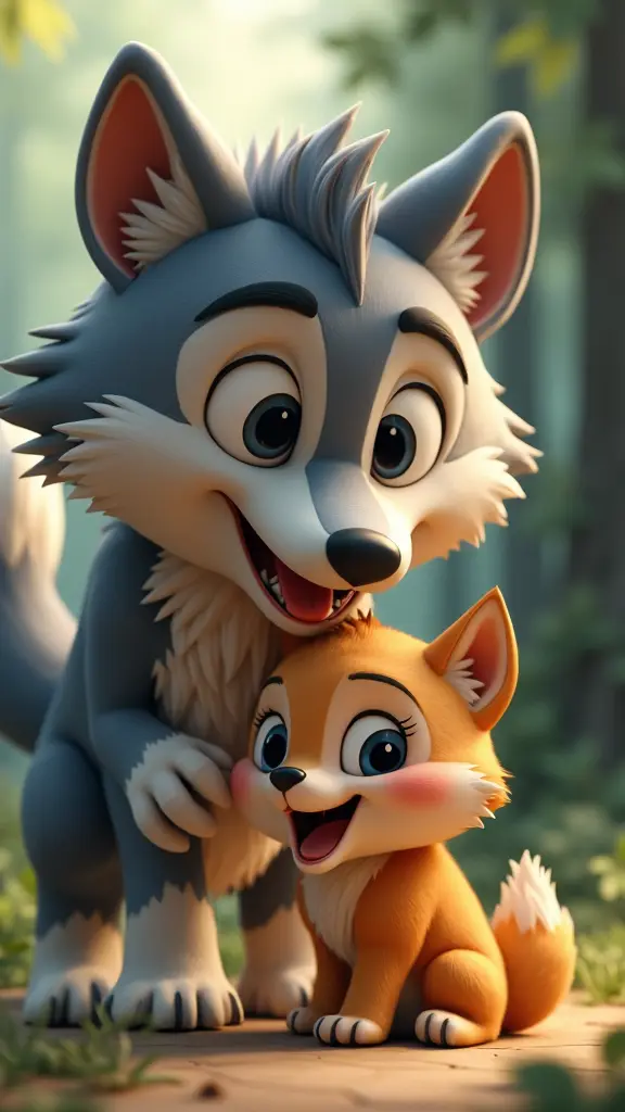 صورة كرتونية ثلاثية الأبعاد لذئب يهاجم رضيع