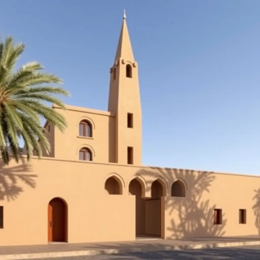 تصميم واجهة مدرسة حرّة تتميّز بشكلها الهندسي مزيذنة بالأقواس بشكلها التقليدي ولونها الرملي الصحراوي ذات طابقين ومستوي الشكل من الأعلى وحائط المدخل شكله كشكل مأذنة هرمية مفتوحة من الأعلى والتي تعكس تراث بني ميزاب بغرداية في الجزائر