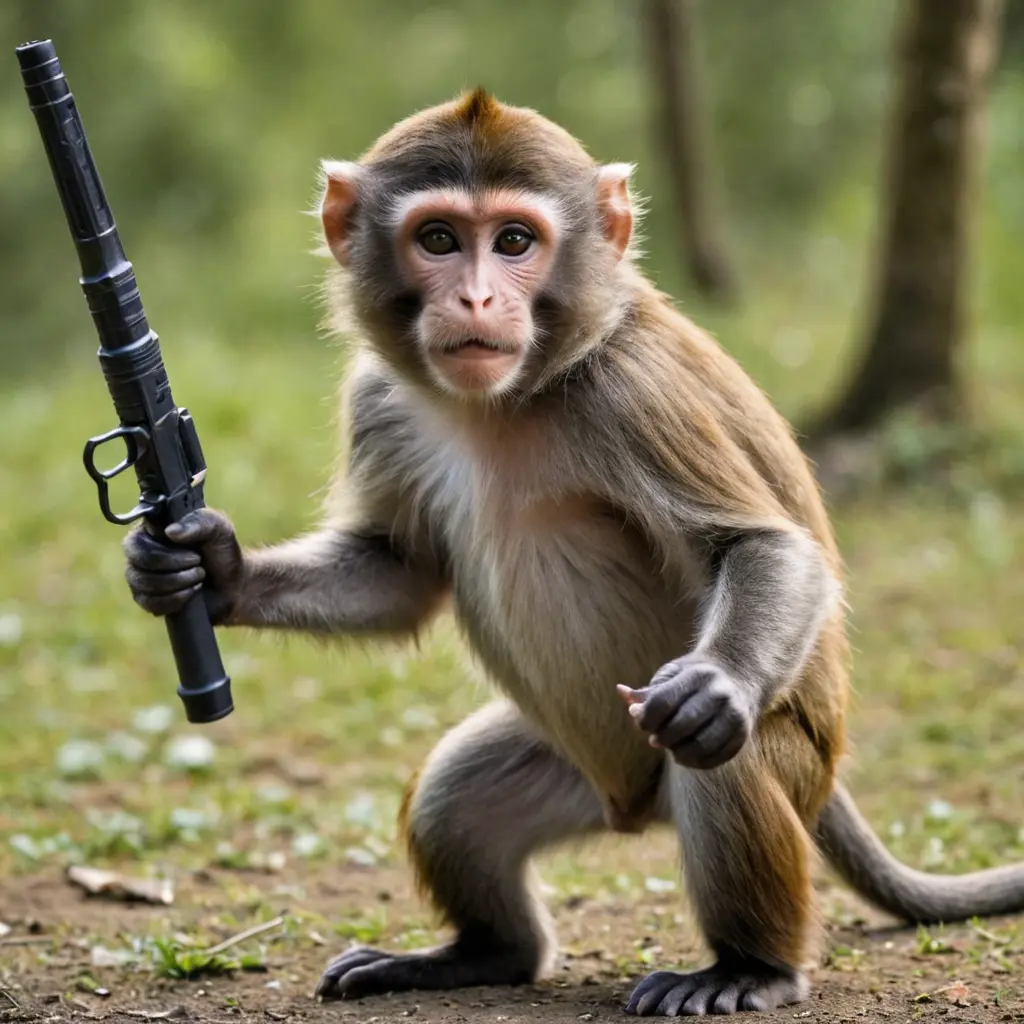 قرد يحمل سلاح