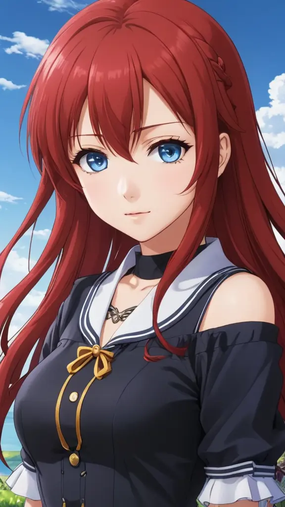 فتاة لون شعرها احمر وعيونها زرقاء أنمي