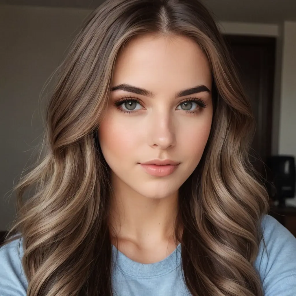 European white girl beautiful and realistic hair brown eyes blue fit hight medium more beautiful