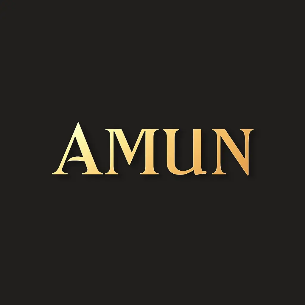 عايز تصميم لبراند ملابس مصري باسم Amun وعايز البراند يتكون من حروف الأسم وداخل فيها طابع فرعوني حرف هيروغليفي من الحروف في الكلمة