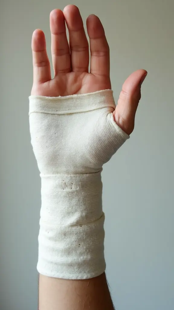 يد حقيقية لشاب يده مضمدة من الساعد حتى كف يده