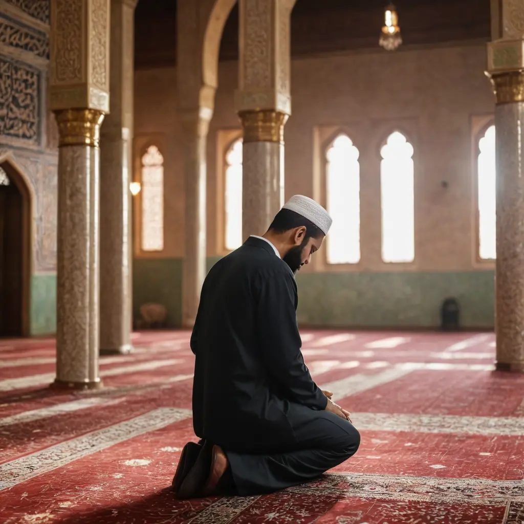 رجل مسلم يدعو الله في المسجد