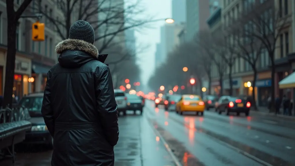 اريد صوره لشخص وحيد لكن الجميع يضحك عليه في شارع نيويورك والدنيا تمطر وهناك 15 سياره علي الطريق وهناك 20 بيت علي الطريق يكون مثل القصر