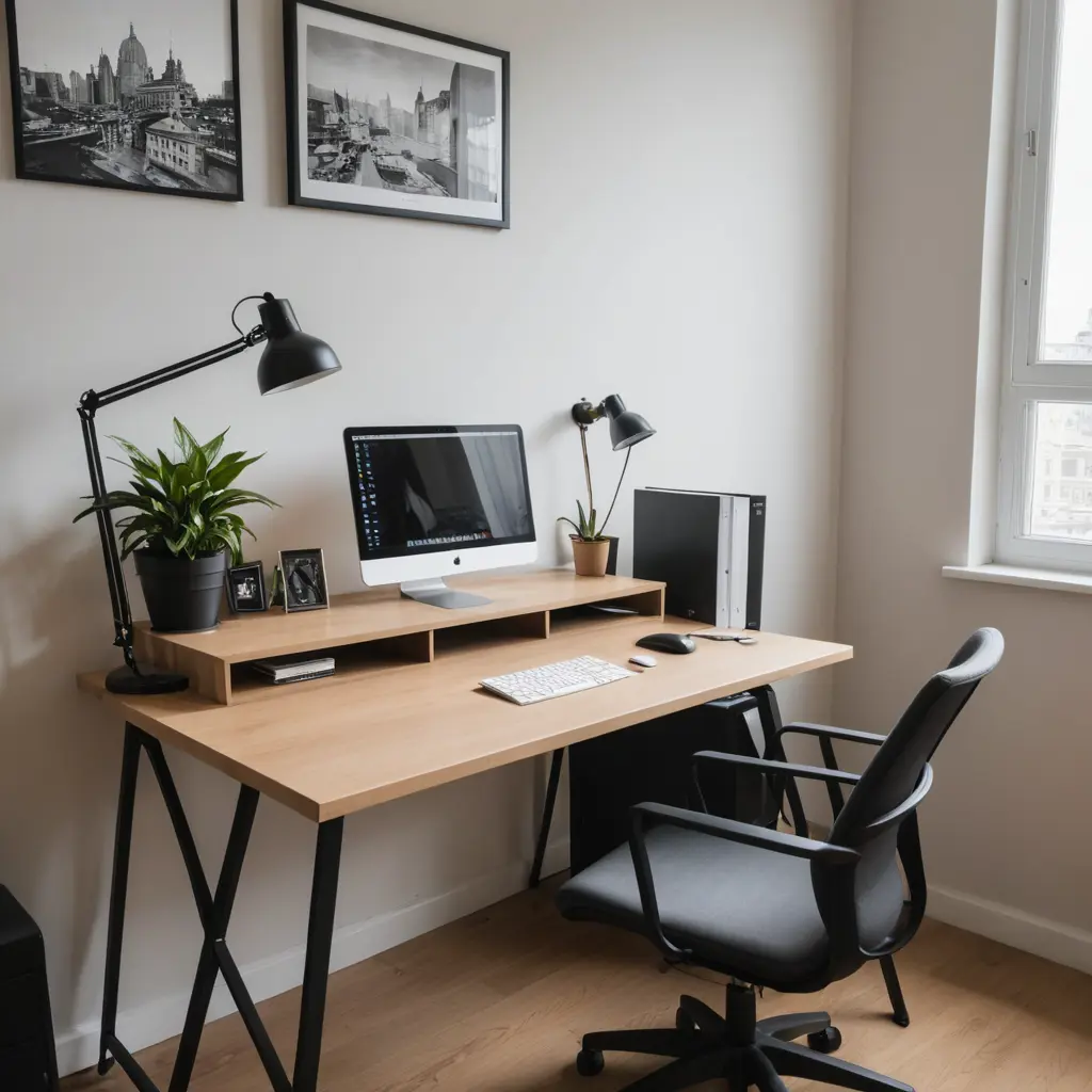 مكتب دراسي عليه كمبيوتر ولابتوب