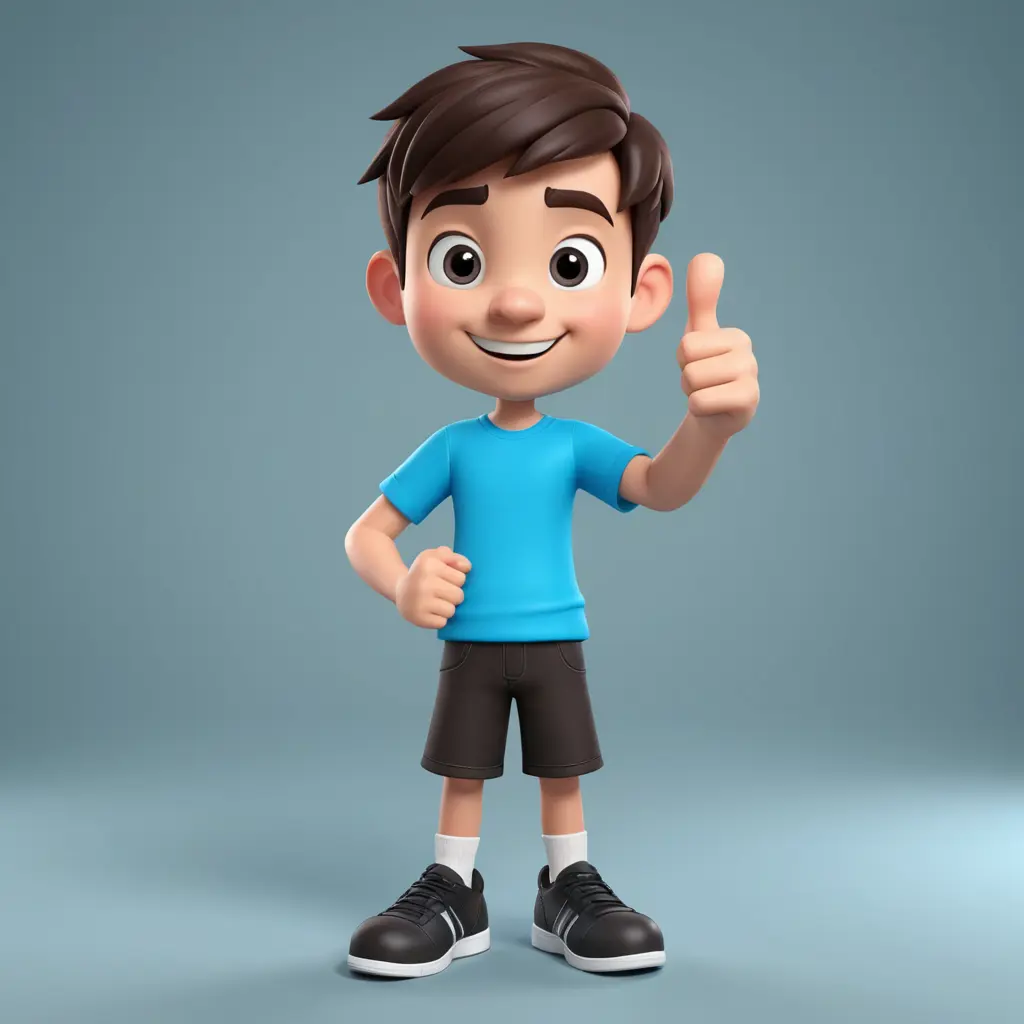انشئ ولد ثرى دي كرتون مجسم ويشير بيدة ي علامة أعجاب