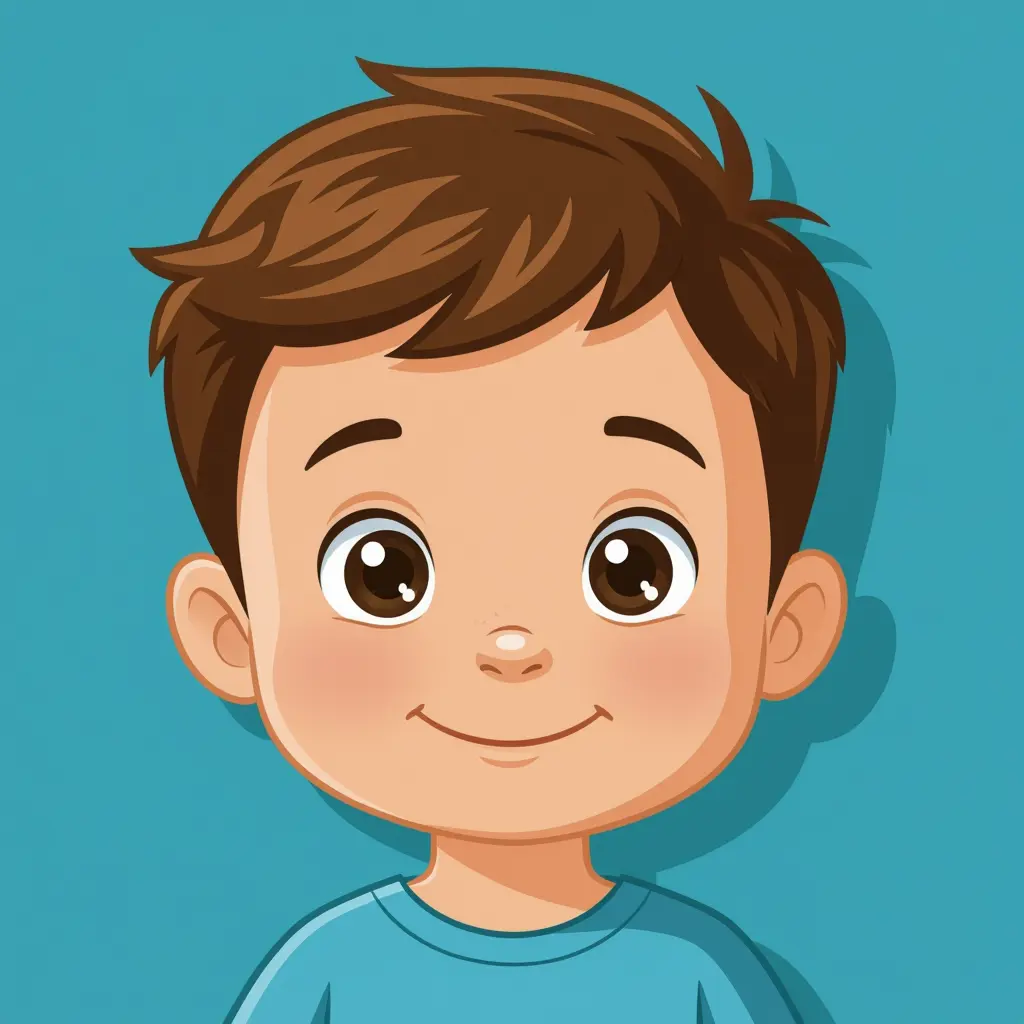 صورة كارتون لوجه طفل ولد هادئ وخلفية الصورة لون واحد