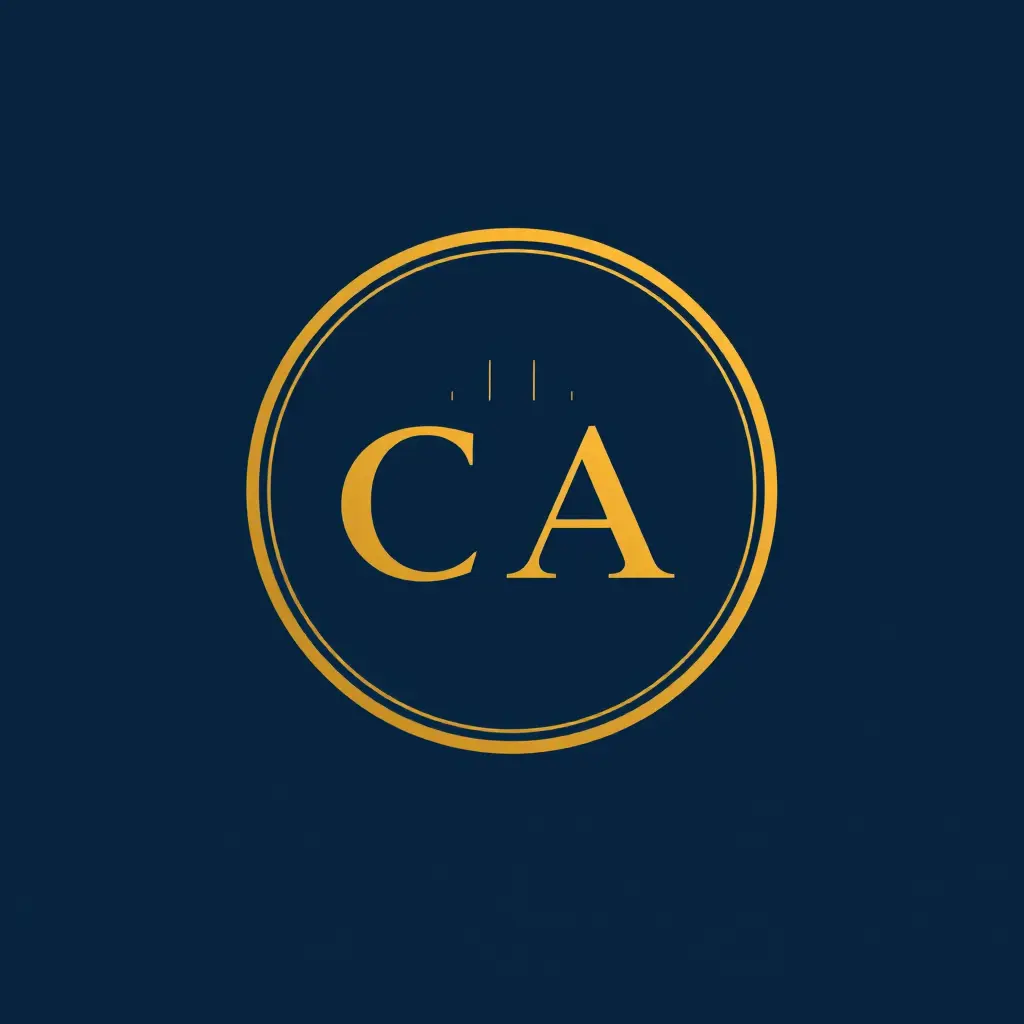 شعار بسيط لمكتب محاسب قانوني، بتدرجات الأزرق الغامق والذهبي