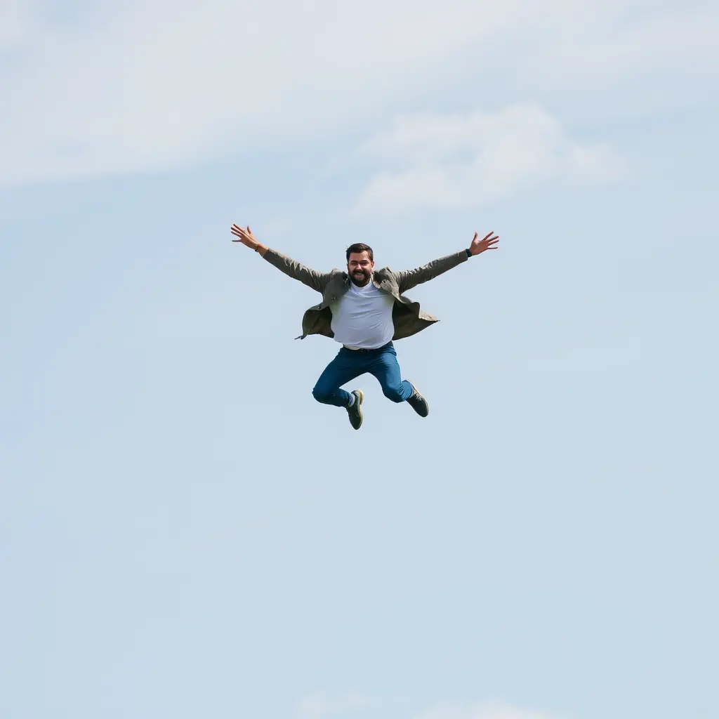 رجل يطير في الهواء