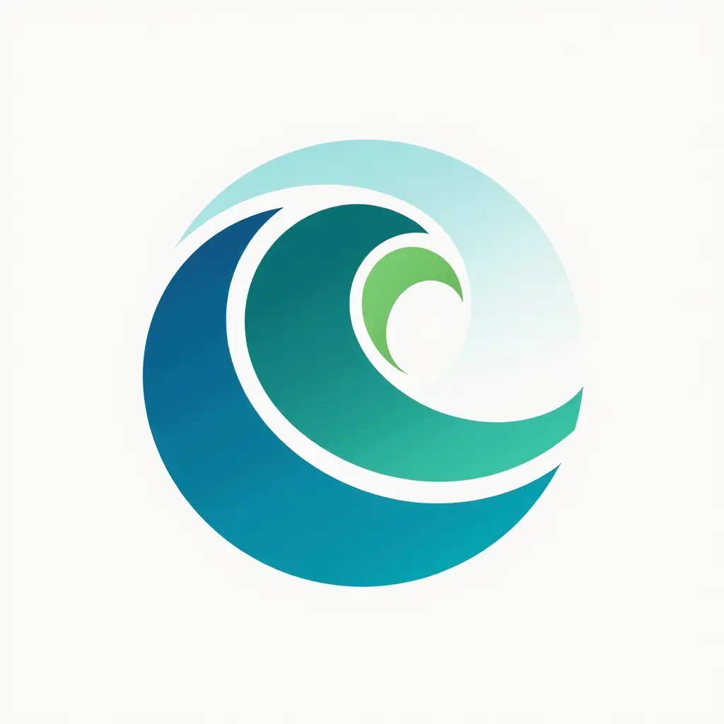 شعار موجة غير متناظر لماركة ركوب أمواج، بتدرجات الأزرق والأخضر والأبيض، تصميم عصري