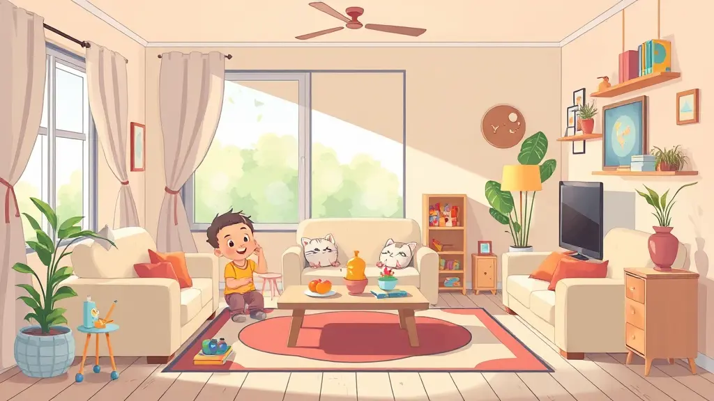 صورة ل غرفة جلوس كرتون رسومية للأطفال  غير مرتبة  وغير نظيفة