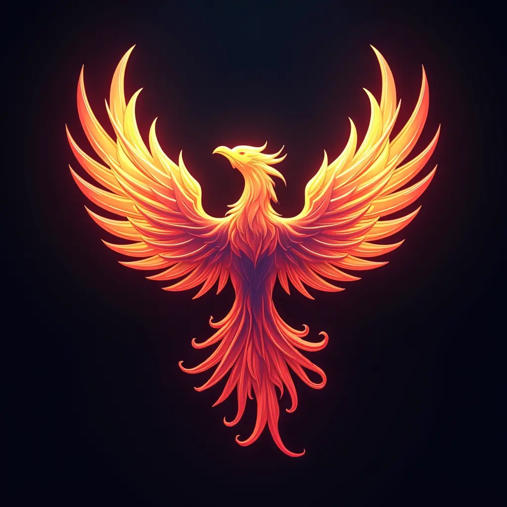 شعار طائر الفينيق، يتصاعد من النيران الرقمية، مستقبلي، تفصيلي، ألوان نيون، ثلاثي الأبعاد