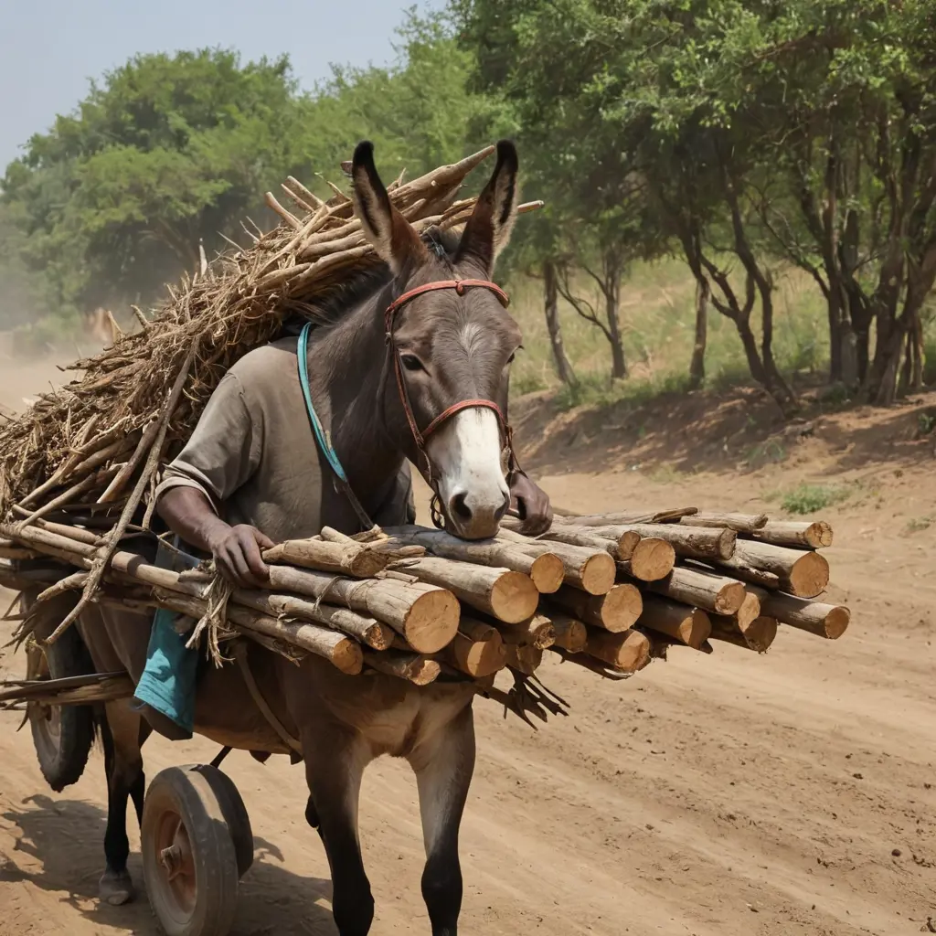 رجل برأس حمار يحمل خشبًا على محراث