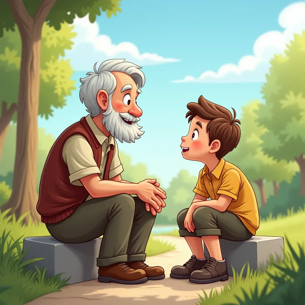 صورة جد مع حفيده يتكلمان. وهم جالسين بالخارج  صورة كرتونية