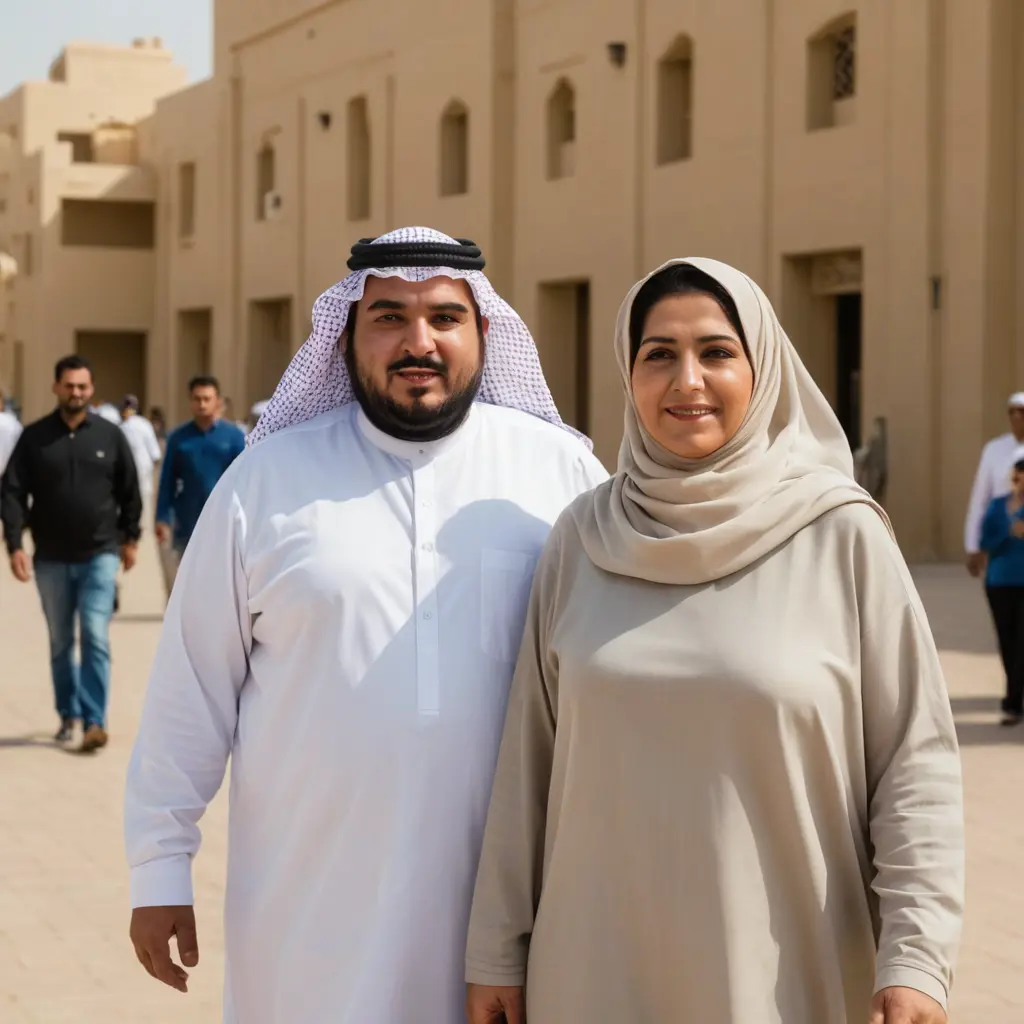 رجل سمين خمسيني سعودي مع امراة سمينة خمسينية خليجية محجبة