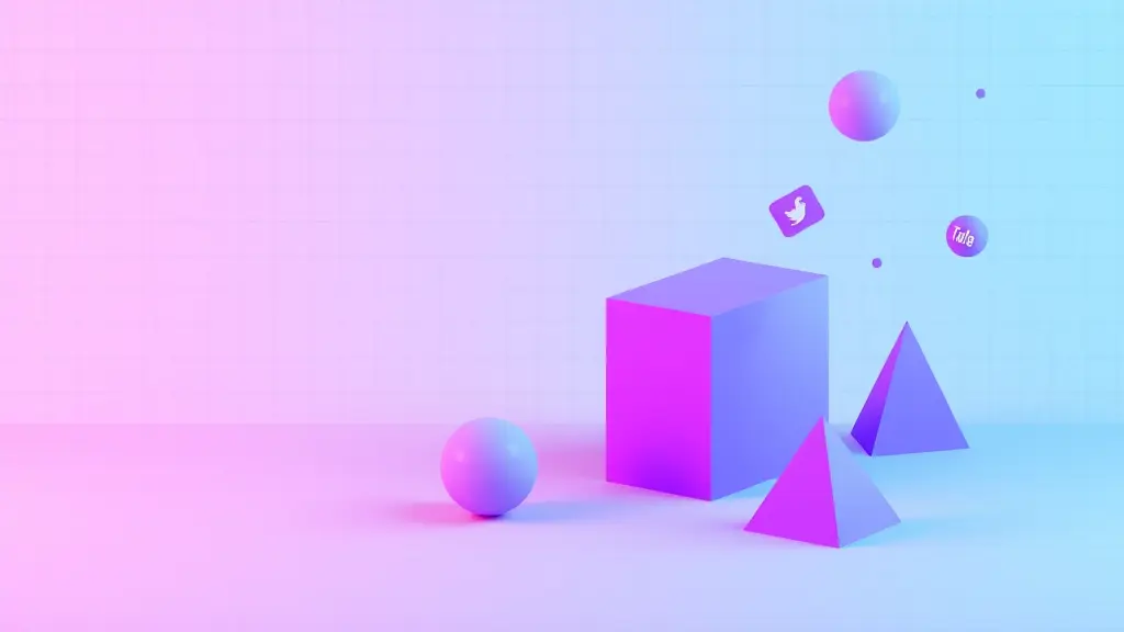 🔹 العناصر البصرية: يوجد مكعب ثلاثي الأبعاد بلون أرجواني، وأشكال هندسية أخرى مثل جزء من كرة ومثلث ثلاثي الأبعاد.