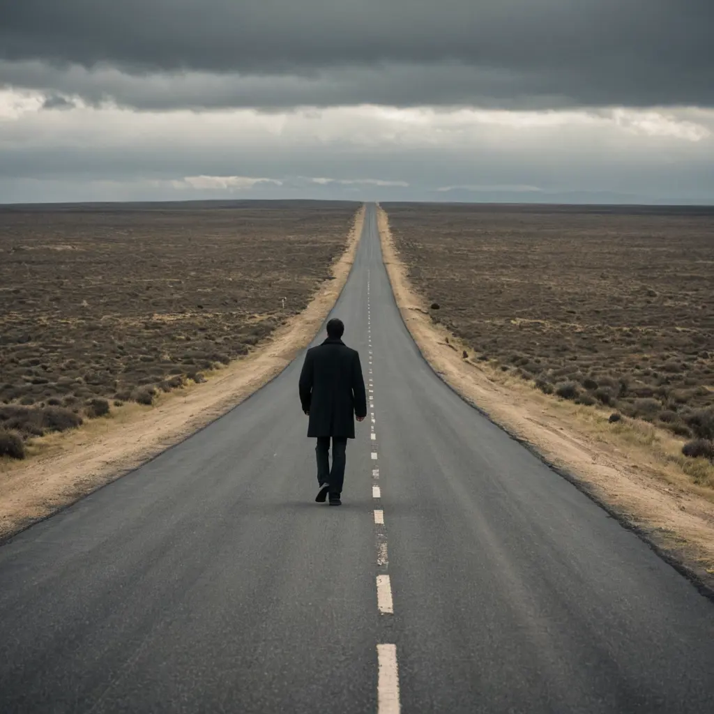 رجل يمشي في طريق طويل وحيدا