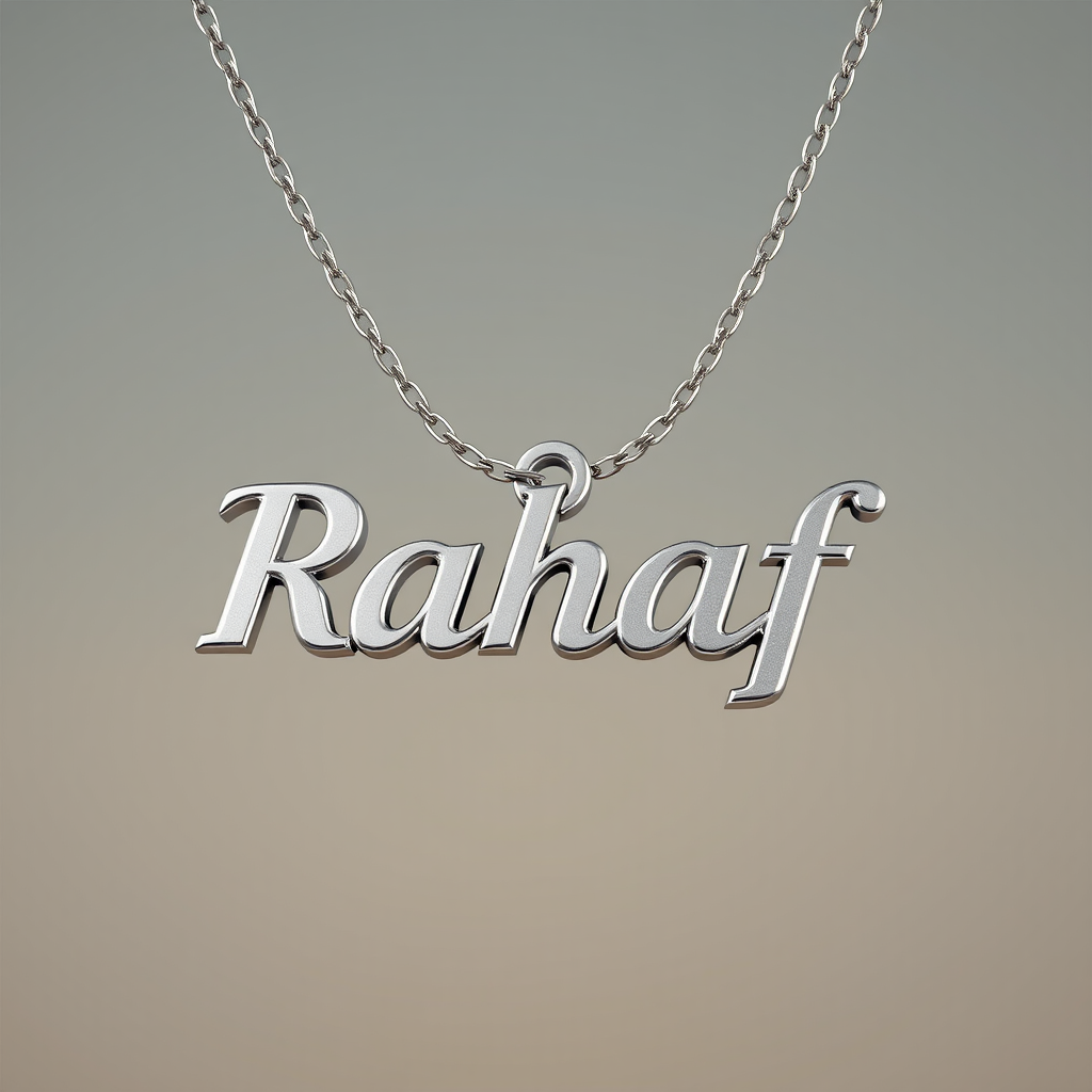 شعار اسم رهف باللغة الإنجليزية مكتوب بالفضة على شكل عقد