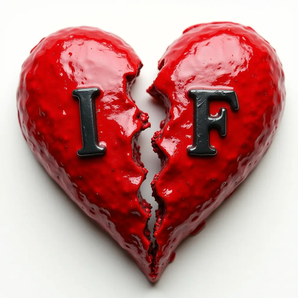 قلب مكسور وينزف ومكتوب داخله حرفانI. F