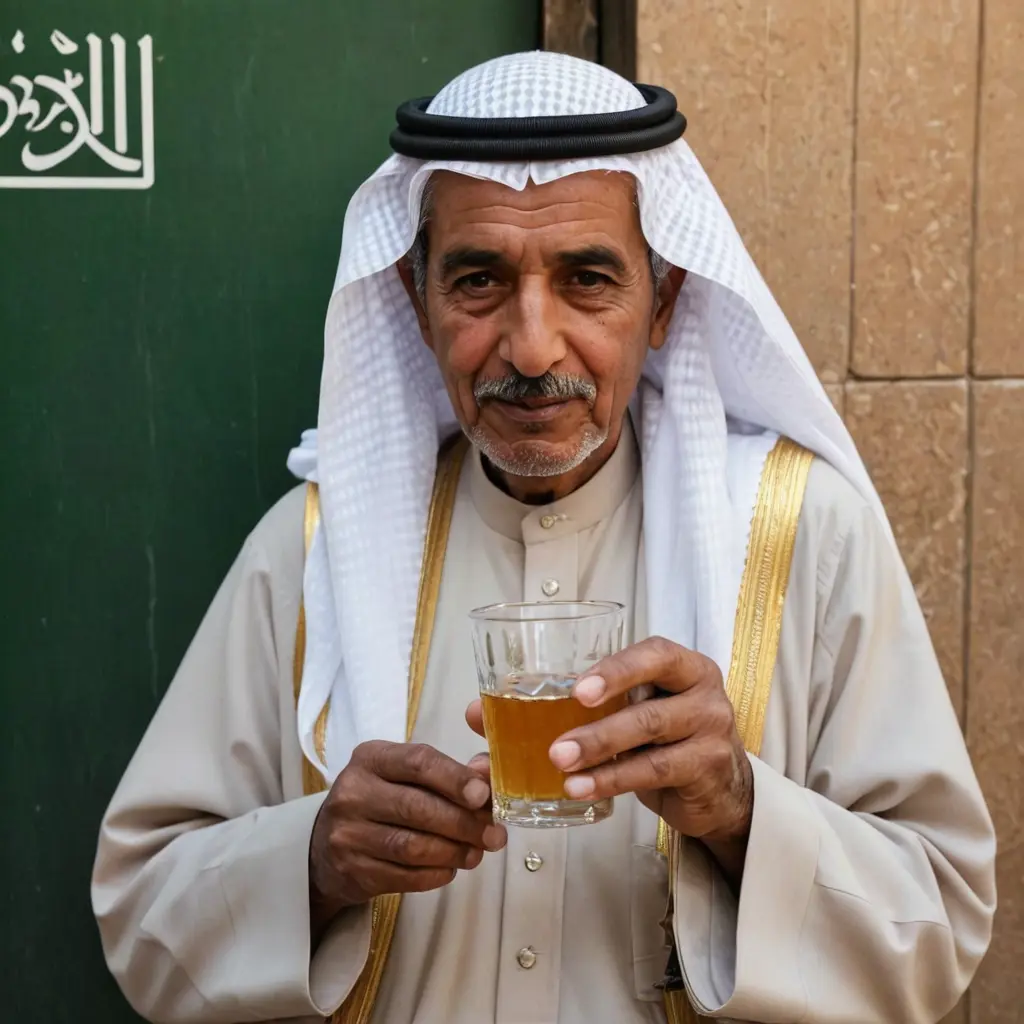رجل سعودي كبير في السن يشرب شاء