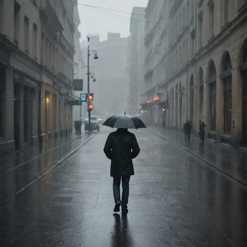 رجل يمشي وحده في الامطار