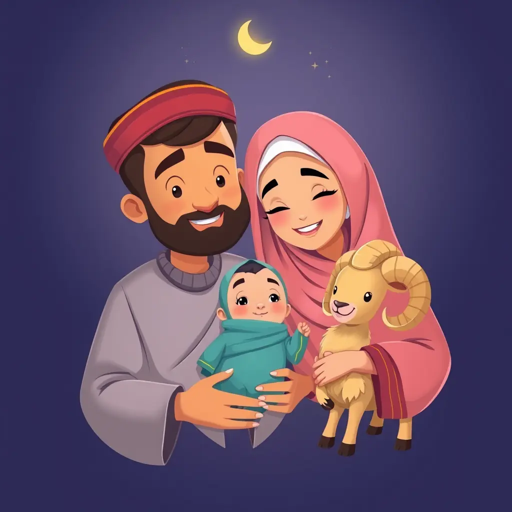صورة أب و أم طفل رضيع و كبش العيد كرتون