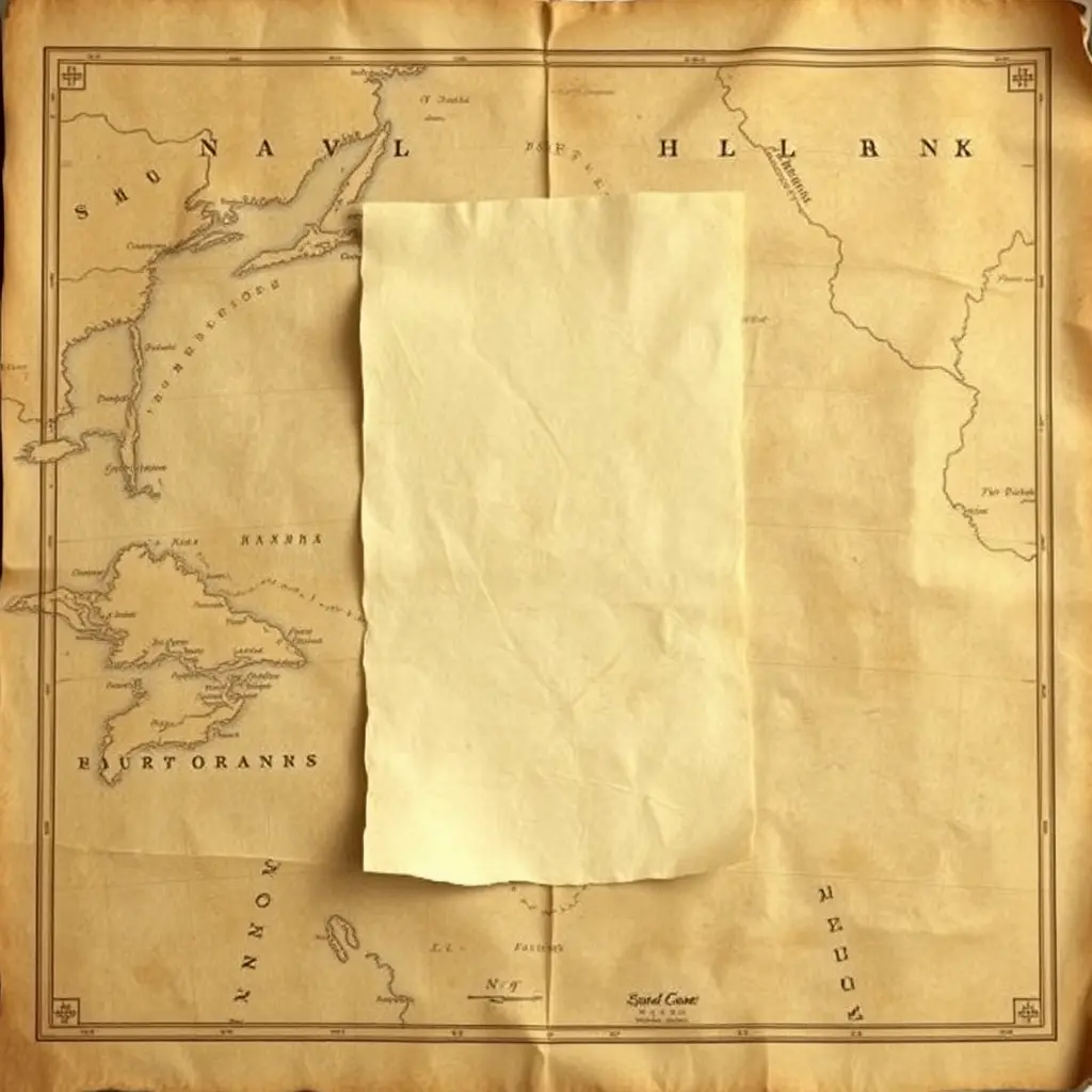 خريطة عتيقة باهتة الأطراف، يتوسطها رق فارغ