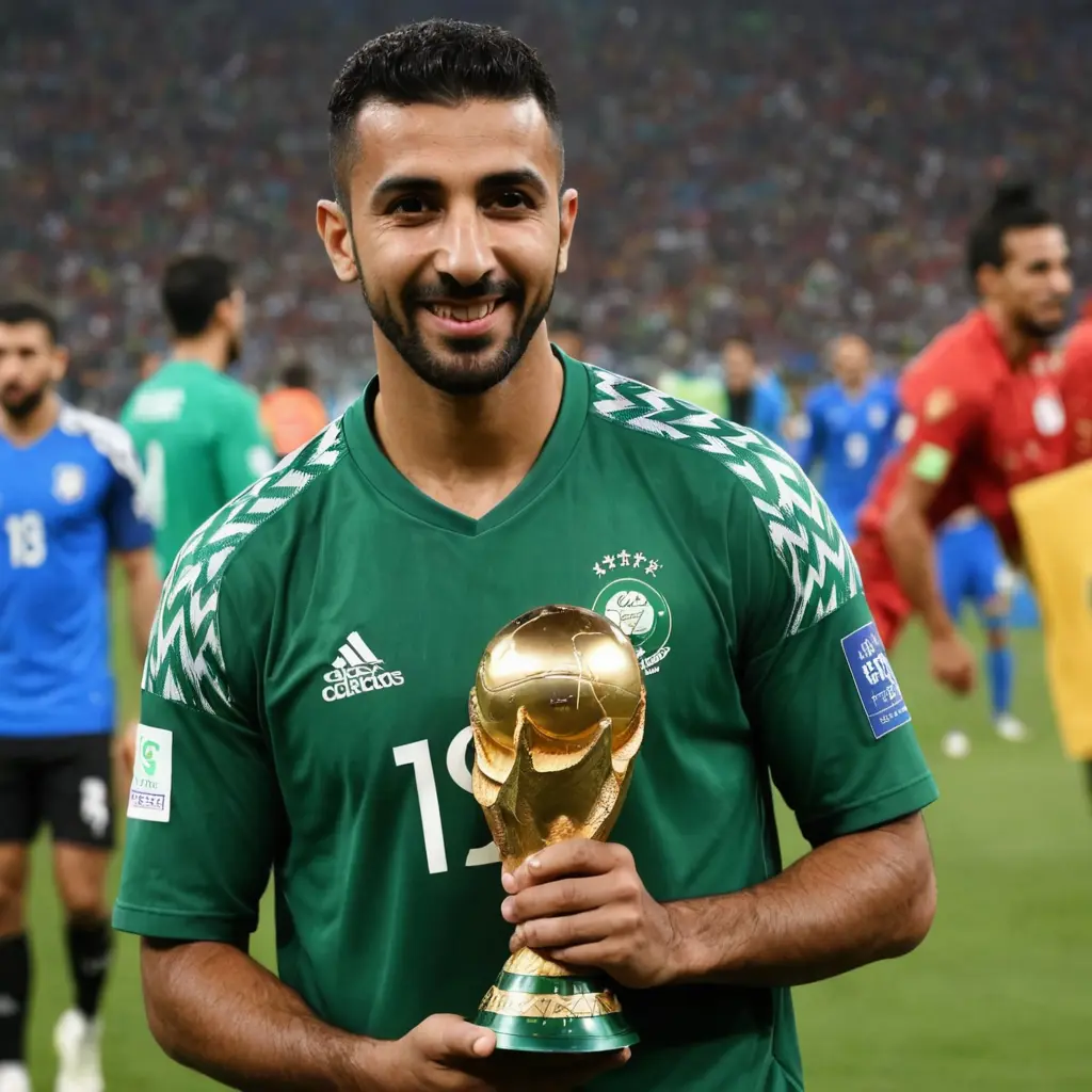 موسى التعمري ماسك كأس العالم مع كأس العالم
