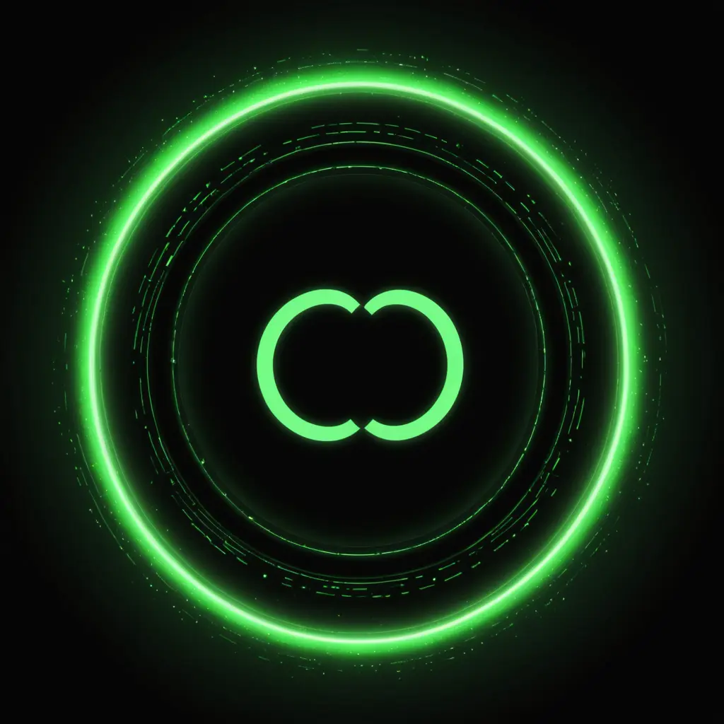 قم بعمل لوجو عباره عن دائره مشعه باللون الاخضر الرقمي بخلفيه رقميه باللونين الاخضر والاسود وقم بكتابه كلمه CO بشكل انيق داخل الدائره الدائره بها كلمه CO فقط