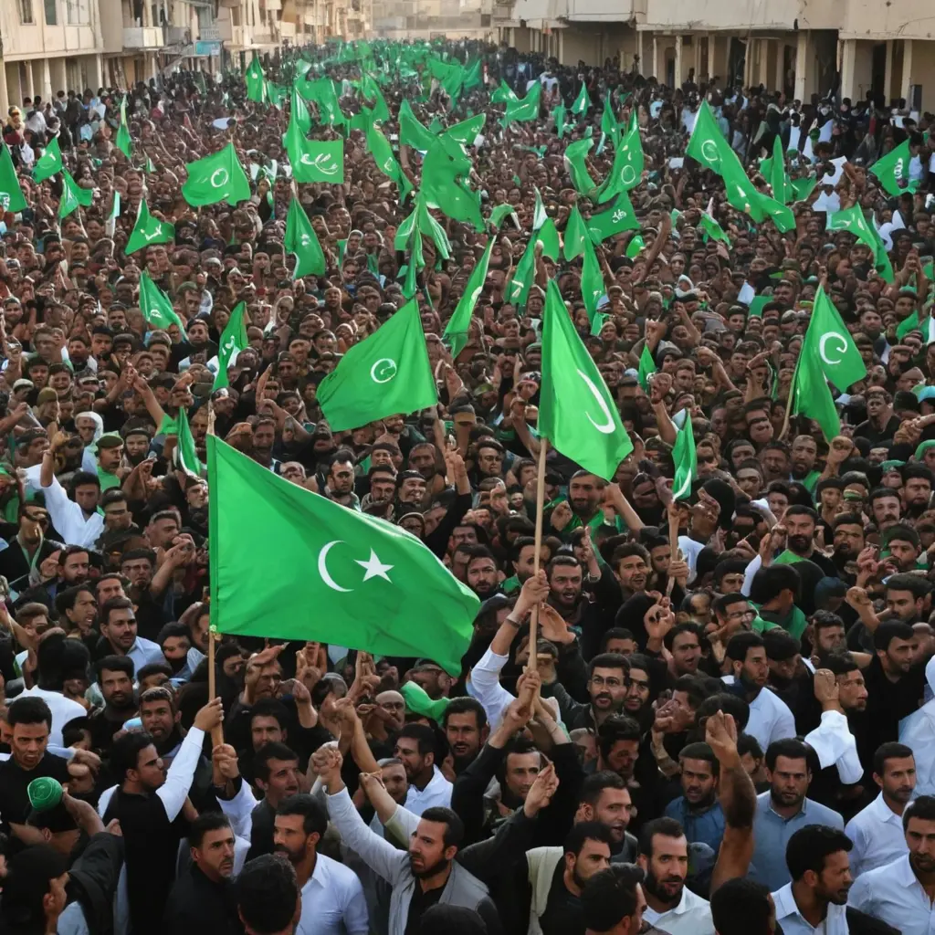 مظاهرة في ليبيا ترفع علمنص الصورةنسخمظاهرة في ليبيا ترفع علم لونه أخضر بدون هلال و نجمة أبعاد الصورةمربع الموديل المستخدم SDXL العرض1024 الارتفاع1024 تاريخ الإنشاء09/09/2024 التطبيق المستخدم مولّد الصور تحميل الدقة الكاملةتعديل الصورةولّد صورة مشابهة0