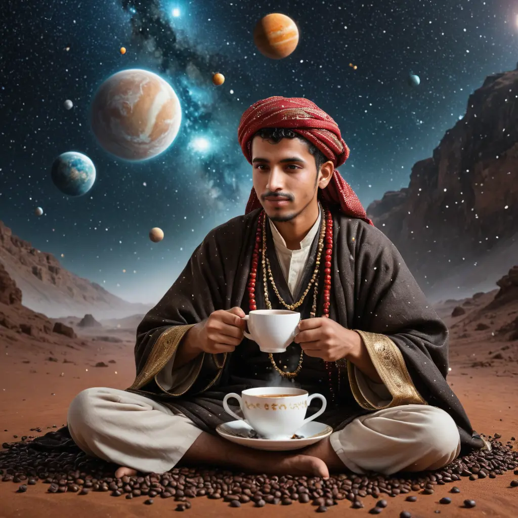 شاب يمني يرتدي زي تقليدي،نص الصورةنسخشاب يمني يرتدي زي تقليدي، يجلس في الفضاء الخارجي يحتسي كوباً من القهوة، بينما تتساقط من حوله حبوب القهوة كالمطر. الخلفية تتضمن كواكب ونجوم متلألئة، مع ألوان زاهية تضفي لمسة سحرية على المشهد أبعاد الصورةمربع الموديل المستخدم SDXL العرض1024 الارتفاع1024 تاريخ الإنشاء05/10/2024 التطبيق المستخدم مولّد الصور تحميل الدقة الكاملةتعديل الصورةولّد صورة مشابهة0