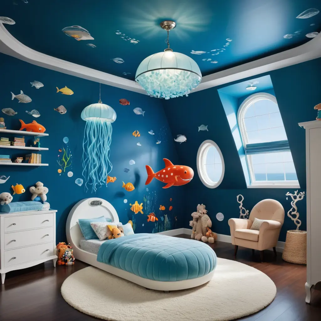 غرفة أطفال ذات طابع تحتنص الصورةنسخغرفة أطفال ذات طابع تحت الماء مع جدران زرقاء متموجة ونوافذ كوة وأضواء معلقة مستوحاة من قنديل البحر وسرير على شكل غواصة بي اسم فراح أبعاد الصورةمربع الموديل المستخدم SDXL العرض1024 الارتفاع1024 تاريخ الإنشاء28/10/2024 التطبيق المستخدم مولّد الصور تحميل الدقة الكاملةتعديل الصورةولّد صورة مشابهة0
