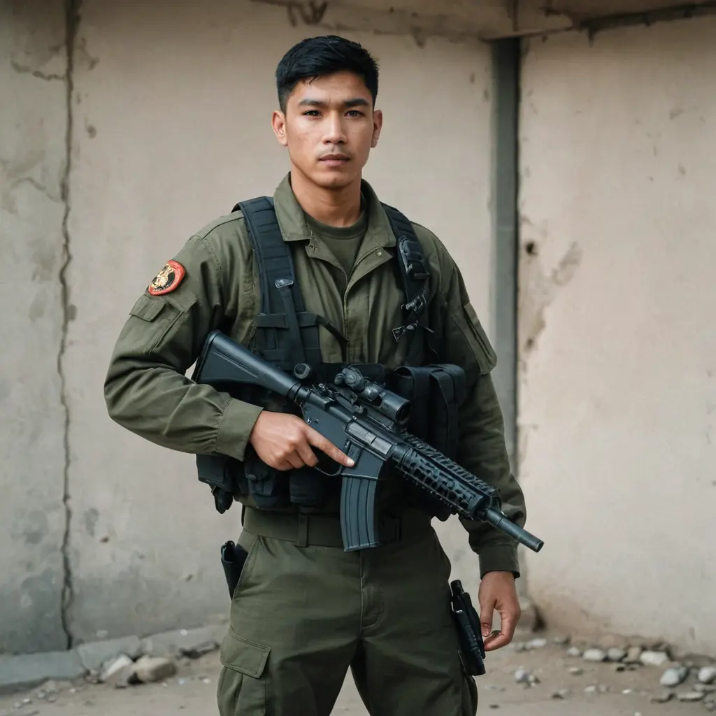 شخص يلبس ملابس عسكريه وبيدهنص الصورةنسخشخص يلبس ملابس عسكريه وبيده مسدس أبعاد الصورةمربع الموديل المستخدم SDXL العرض1024 الارتفاع1024 تاريخ الإنشاء17/09/2024 التطبيق المستخدم مولّد الصور تحميل الدقة الكاملةتعديل الصورةولّد صورة مشابهة0