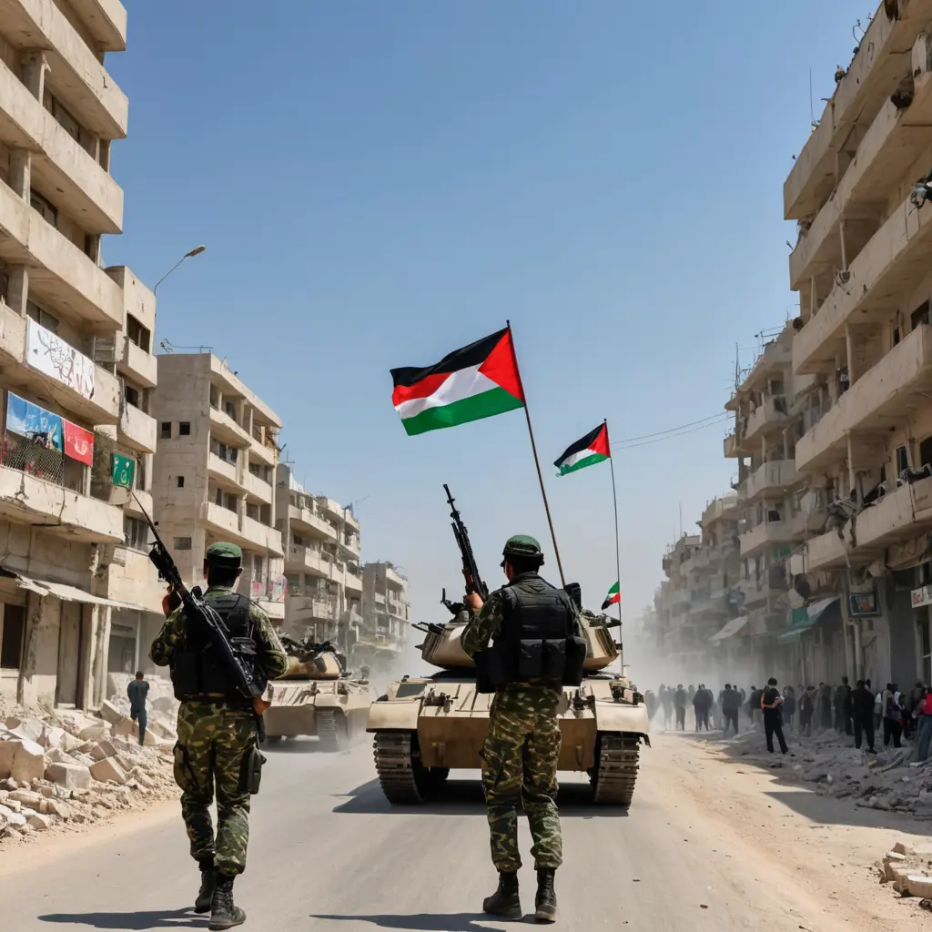 تصوير مشهد احتفالي يعكس اليوم انتصار 7اكتوبر الفلسطيني مع معالم الحرب مثل الجنود علي خط برليف ورياتفلسطين مثل، يظهر أشخاص يحتفلون، يرتدون الأزياء المقاومة الفلسطينية الحربيه – الأسلحه النارية تضيء السماء الرقم7 وكلمه اكتوبر و رقم 2023' يندمج اسفل رقم 7 بشكل إبداعي في التصميم، محاط برموز المقاومة الفلسطينية ككتائب عز الدين القسام الحربية مثل الاسلحه عن وعناطيم الماء والدببابت تراثية المشهد يعبر عن الفخر والنصر بطريقة مرحة وديناميكية