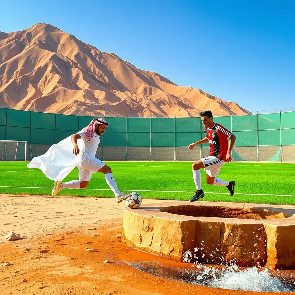 ملعب كورة يلعب فيه علينص الصورةنسخملعب كورة يلعب فيه علي البليهي وكرستيانو رونالدو في صحراء الدهناء بجانب بئر ينبع الماء منه بكثره أبعاد الصورةمربع الموديل المستخدم Flux Fast العرض1024 الارتفاع1024 تاريخ الإنشاء28/09/2024 التطبيق المستخدم مولّد الصور تحميل الدقة الكاملةتعديل الصورةولّد صورة مشابهة0
