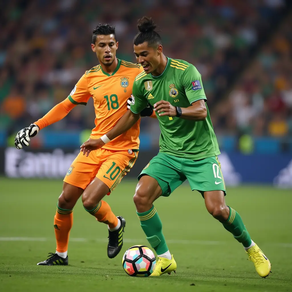 الحارس المغربي ياسين بونو يراوغنص الصورةنسخالحارس المغربي ياسين بونو يراوغ كريستيانو رونالدو في الملعب وكريستيانو رونالدو يبكي أبعاد الصورةمربع الموديل المستخدم Flux Dev العرض1024 الارتفاع1024 تاريخ الإنشاء14/09/2024 التطبيق المستخدم مولّد الصور تحميل الدقة الكاملةتعديل الصورةولّد صورة مشابهة0