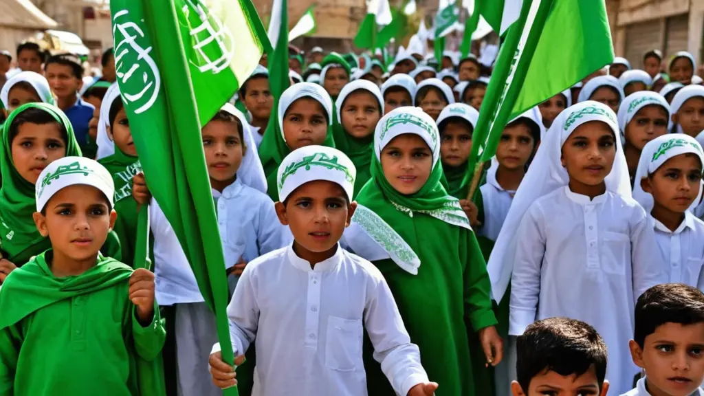 اطفال يحتفلون بالمولد النبوي الشريفنص الصورةنسخاطفال يحتفلون بالمولد النبوي الشريف ويرفعون رايات خضراء وبيضاء مكتوب عليها لبيك يارسول الله أبعاد الصورةافقي الموديل المستخدم SDXL العرض1024 الارتفاع576 تاريخ الإنشاء08/09/2024 التطبيق المستخدم مولّد الصور تحميل الدقة الكاملةتعديل الصورةولّد صورة مشابهة0