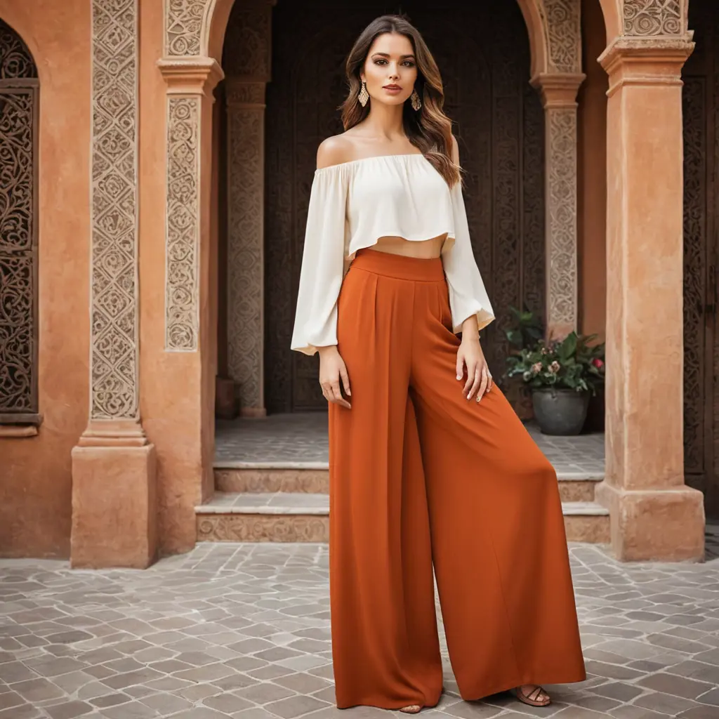 بنطال بالازو برتقالي محترق عالينص الصورةنسخبنطال بالازو برتقالي محترق عالي الخصر مع بلوزة كريمية مكشوفة الأكتاف، تصميم مستوحى من الطراز المغربي أبعاد الصورةمربع الموديل المستخدم SDXL العرض1024 الارتفاع1024 تاريخ الإنشاء19/10/2024 التطبيق المستخدم مولّد الصور تحميل الدقة الكاملةتعديل الصورةولّد صورة مشابهة0