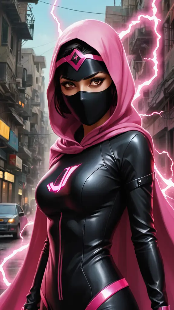 بطلة خارقة جميلة ومهذبة فينص الصورةنسخبطلة خارقة جميلة ومهذبة في مدينه صنعاء لابسه حجاب اسود وكمامة سوداء على فمها ولديها قوة الكهرباء وردية اللون التي تساعدها على الطيران والارتفاع من الارض وتظهر الطاقة الكهربائية حول يداها وترتدي لابكوت مكتوب حرف J والماسه أبعاد الصورةعمودي الموديل المستخدم SDXL العرض576 الارتفاع1024 تاريخ الإنشاء30/10/2024 التطبيق المستخدم مولّد الصور تحميل الدقة الكاملةتعديل الصورةولّد صورة مشابهة0