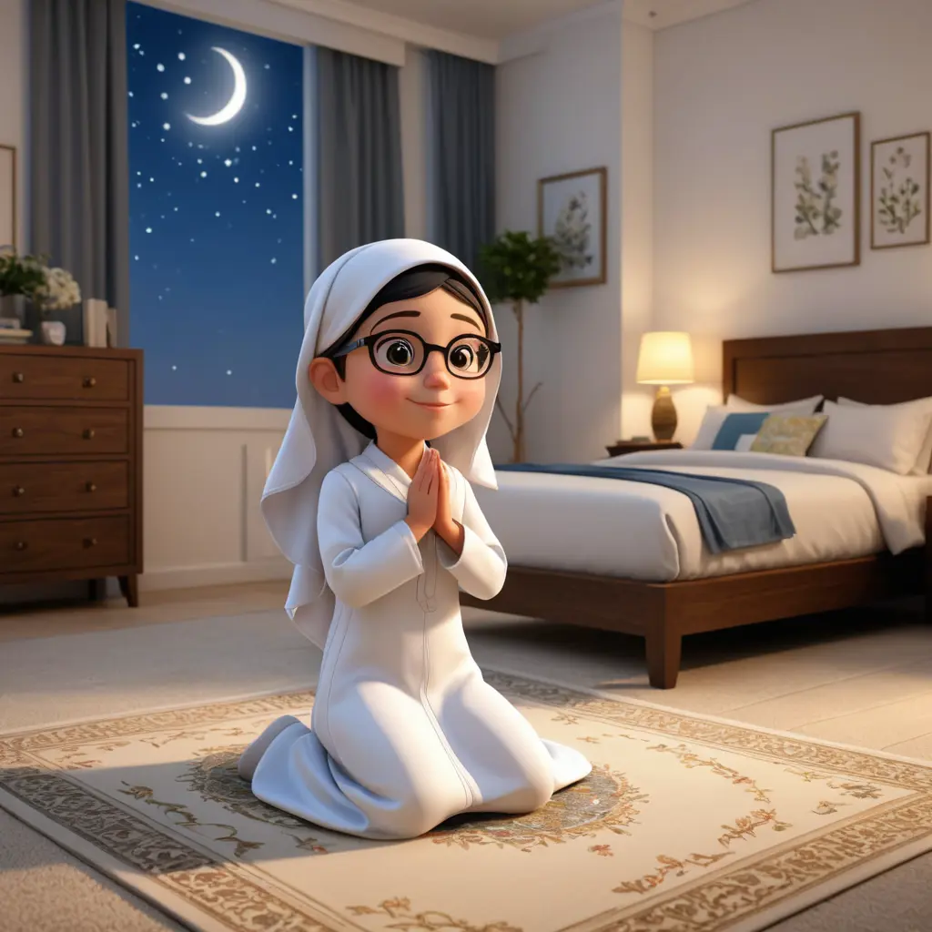 فتاة مسلمة ، بشرتها حنطيةنص الصورةنسخفتاة مسلمة ، بشرتها حنطية ، ترتدي نظارات طبية ،عيون عسلية ،شرشف صلاة ابيض ، تصلي الفجر تعبد الله ، ترفع يديها الى السماء، تقف على سجادة ، في غرفة النوم، الرياض، المملكة العربية السعودية، كرتون 3d , لطيف أبعاد الصورةمربع الموديل المستخدم SDXL العرض1024 الارتفاع1024 تاريخ الإنشاء18/10/2024 التطبيق المستخدم مولّد الصور تحميل الدقة الكاملةتعديل الصورةولّد صورة مشابهة0